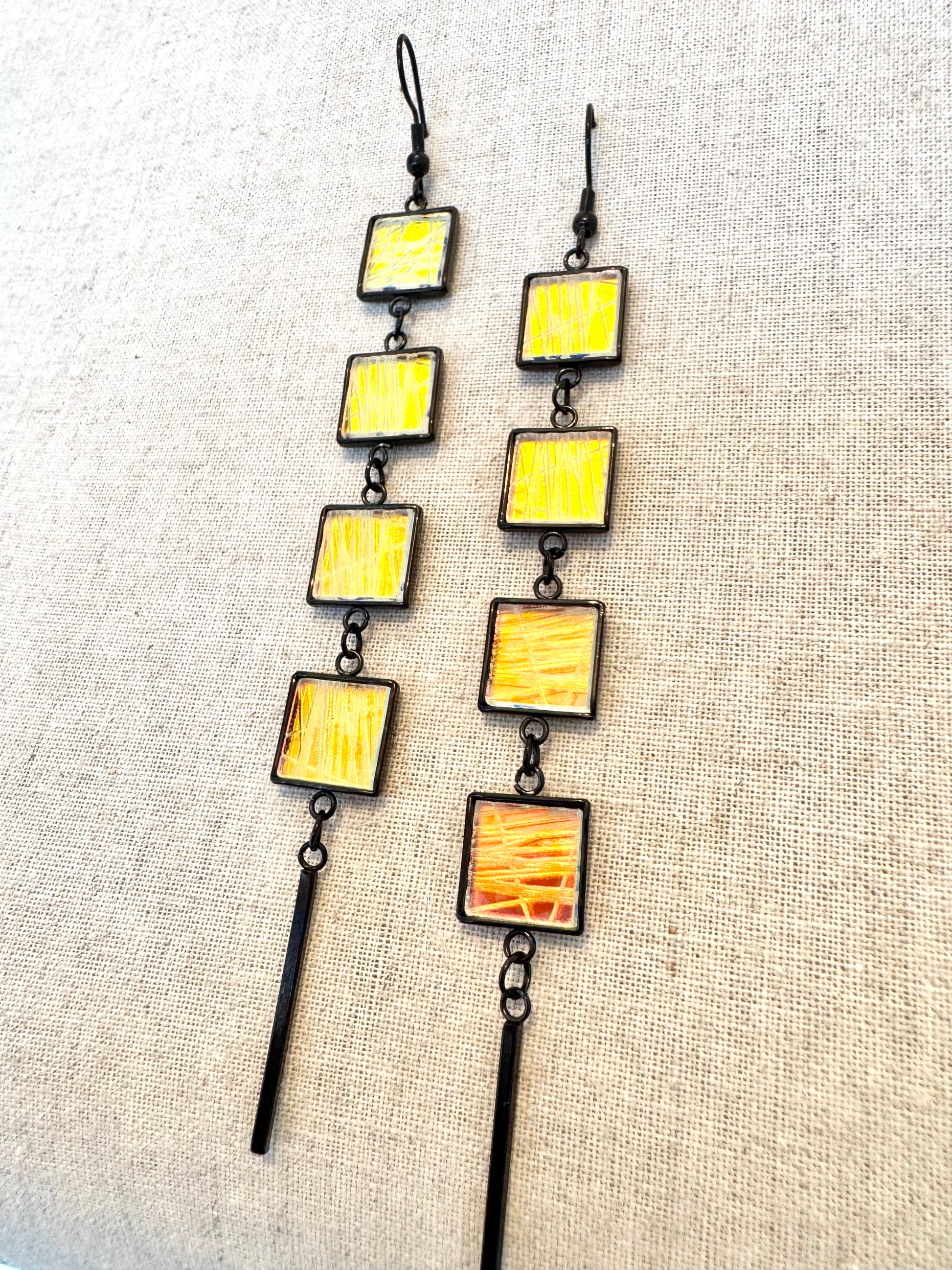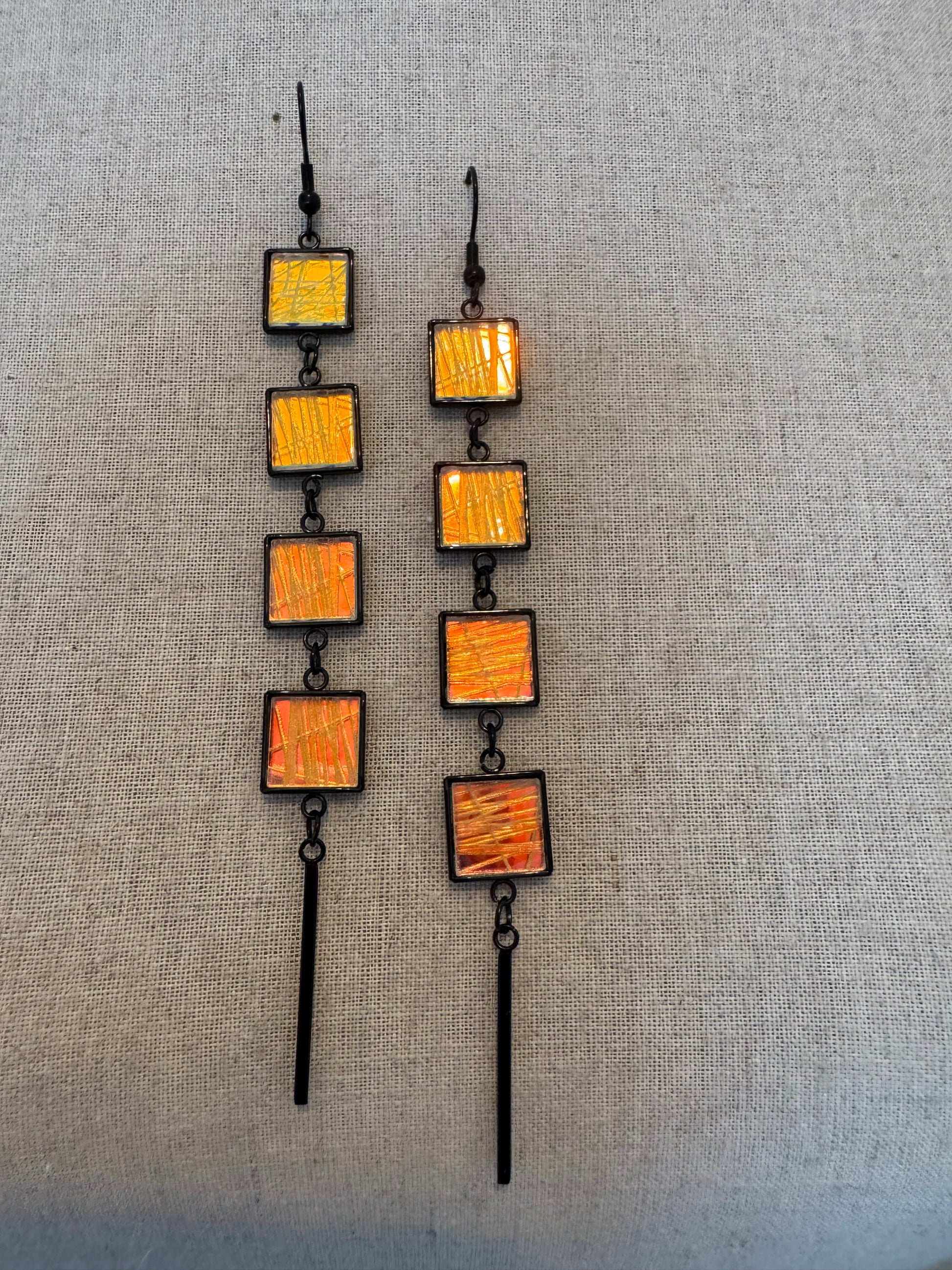 Four x Piece Dangle Earring, Black & Clear Etched Abstract Pattern