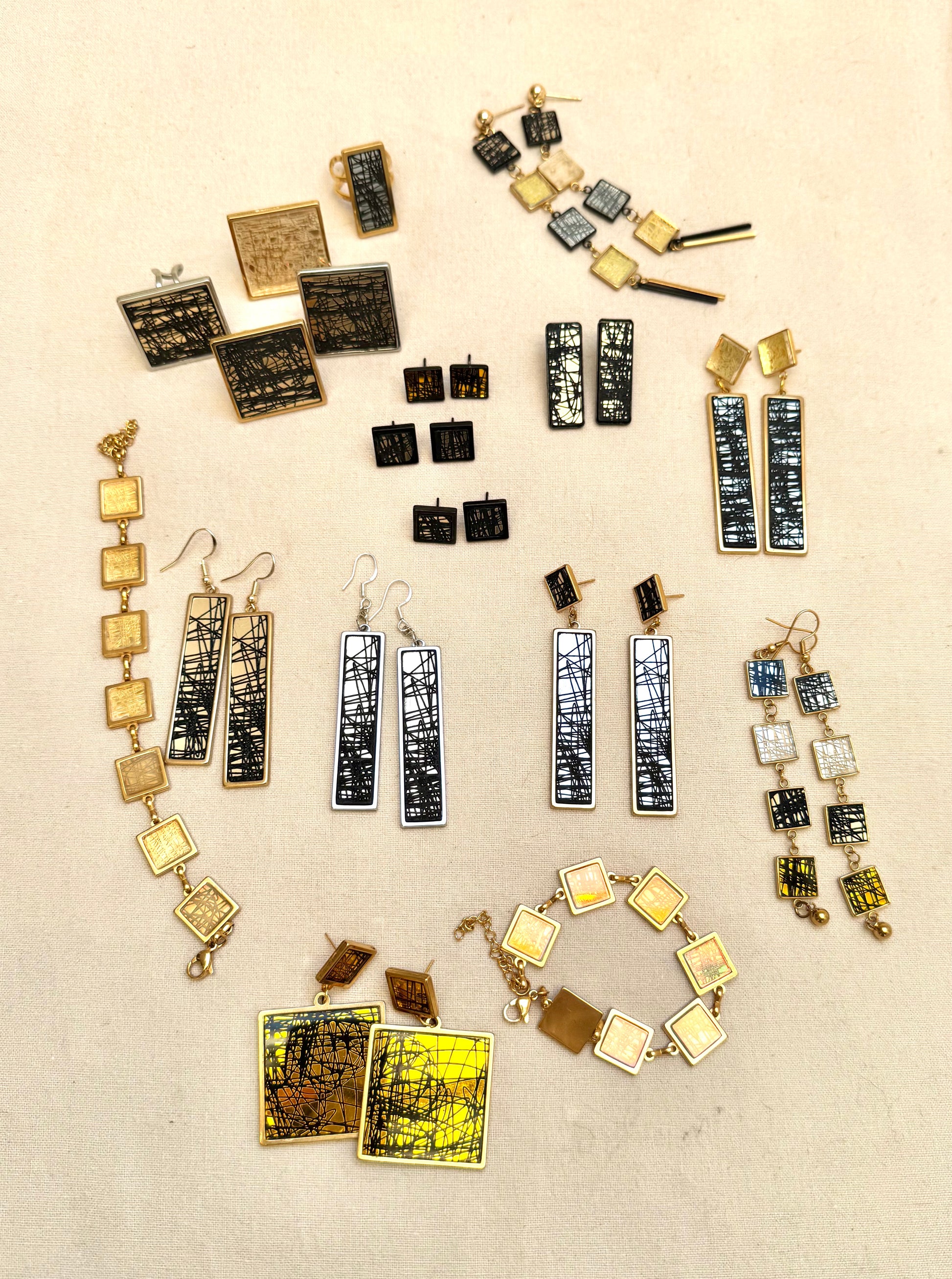 A square and a long rectangle, unique in appearance they are perfect as a super stylish fashion accessory or beautiful gift!