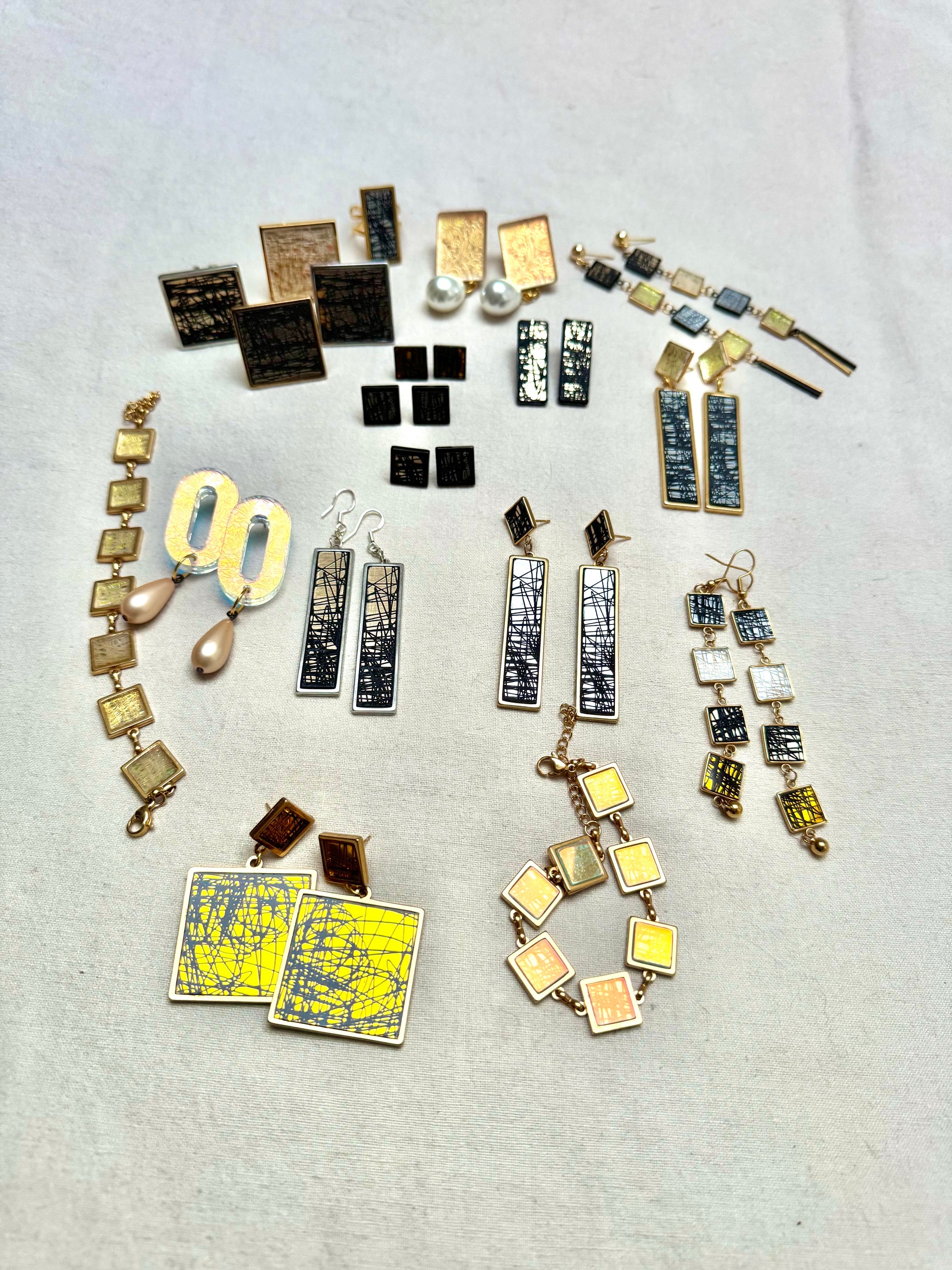 These eye catching beauties are inspired by an abstract art, pattern and contemporary materials, made from gold and black plated brass and clear iridescent acrylics set into 4 mini squares, very unique in appearance they are perfect as a super stylish fashion accessory or beautiful gift!