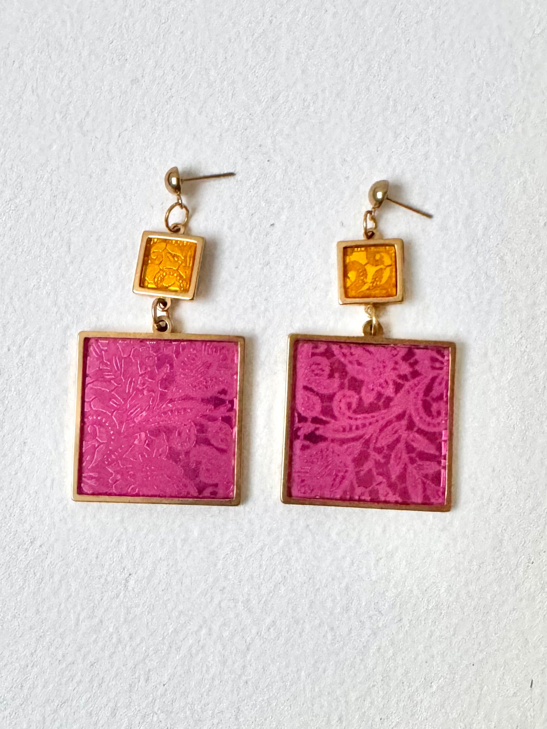 Pink & Gold Lace 2 x Piece Dangle Earring